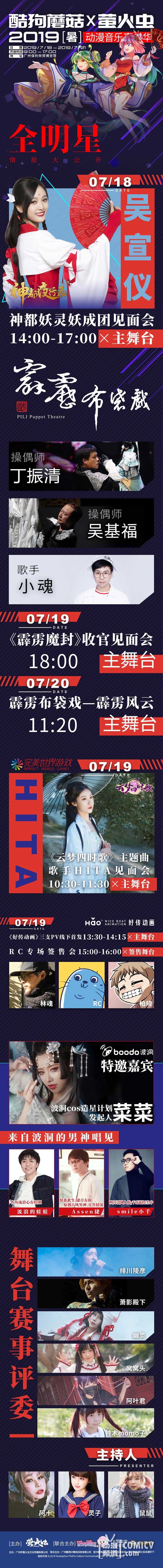 2019年7月18日-21日(一共4天)由萤火虫文化主办、酷狗音乐联合主办的第22届酷狗蘑菇×萤火虫动漫音乐嘉年华,盛大登陆广州保利世贸博览馆4/5/6号馆。超百个国创IP来袭,近百位次元红星齐聚给你们带来一场不一样的二次元文化狂欢盛会。